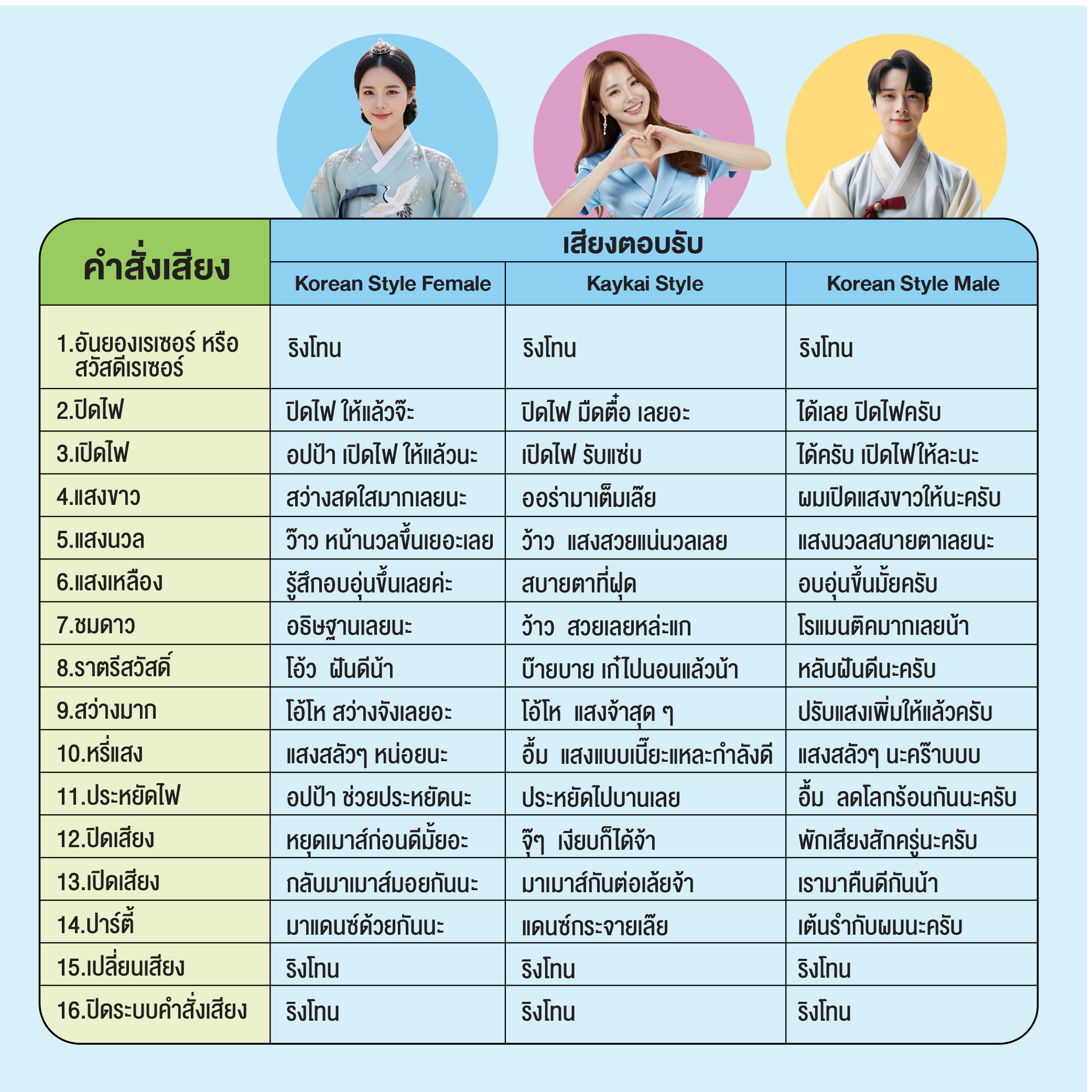 : สั่งการด้วยเสียงเป็นภาษาไทย เพื่อเปิด/ปิด ปรับเปลี่ยนระดับแสงสว่าง เปลี่ยนสีแสง เช่น แสงขาว แสงเหลือง แสงขาวนวล และแสงสี ระยะสั่งการสูงถึง 4 เมตร