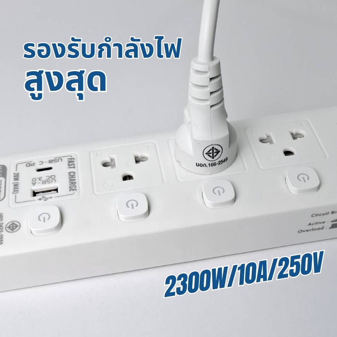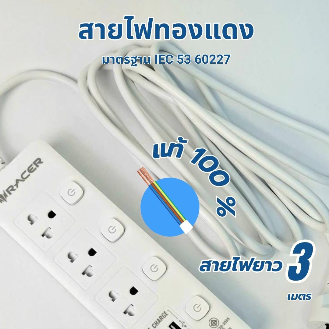 Racer EXTENSION PLUG ปลั๊กไฟ ฟาสชาร์จ3ช่อง1USB-1C สายไฟทองแดงแท้ วัสดุไม่ลามไฟ ฟาสชาร์จแท้ 100% มาตราฐาน มอก.